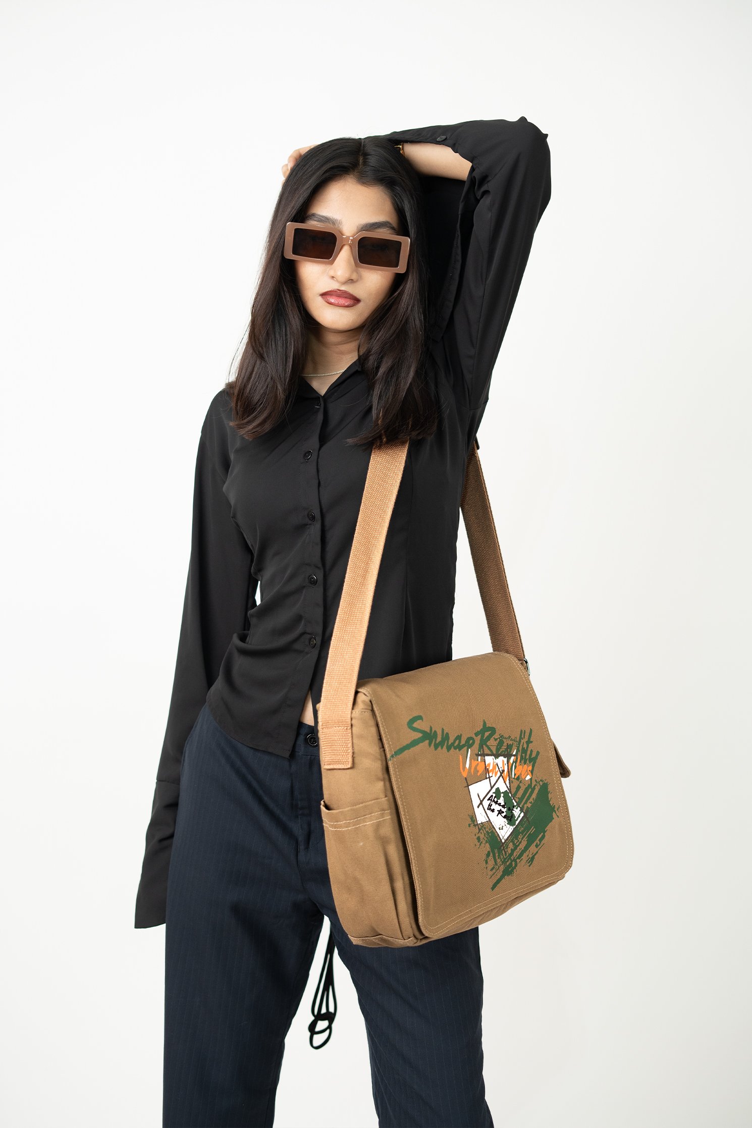 Beige Snnap Reality Messenger Bag