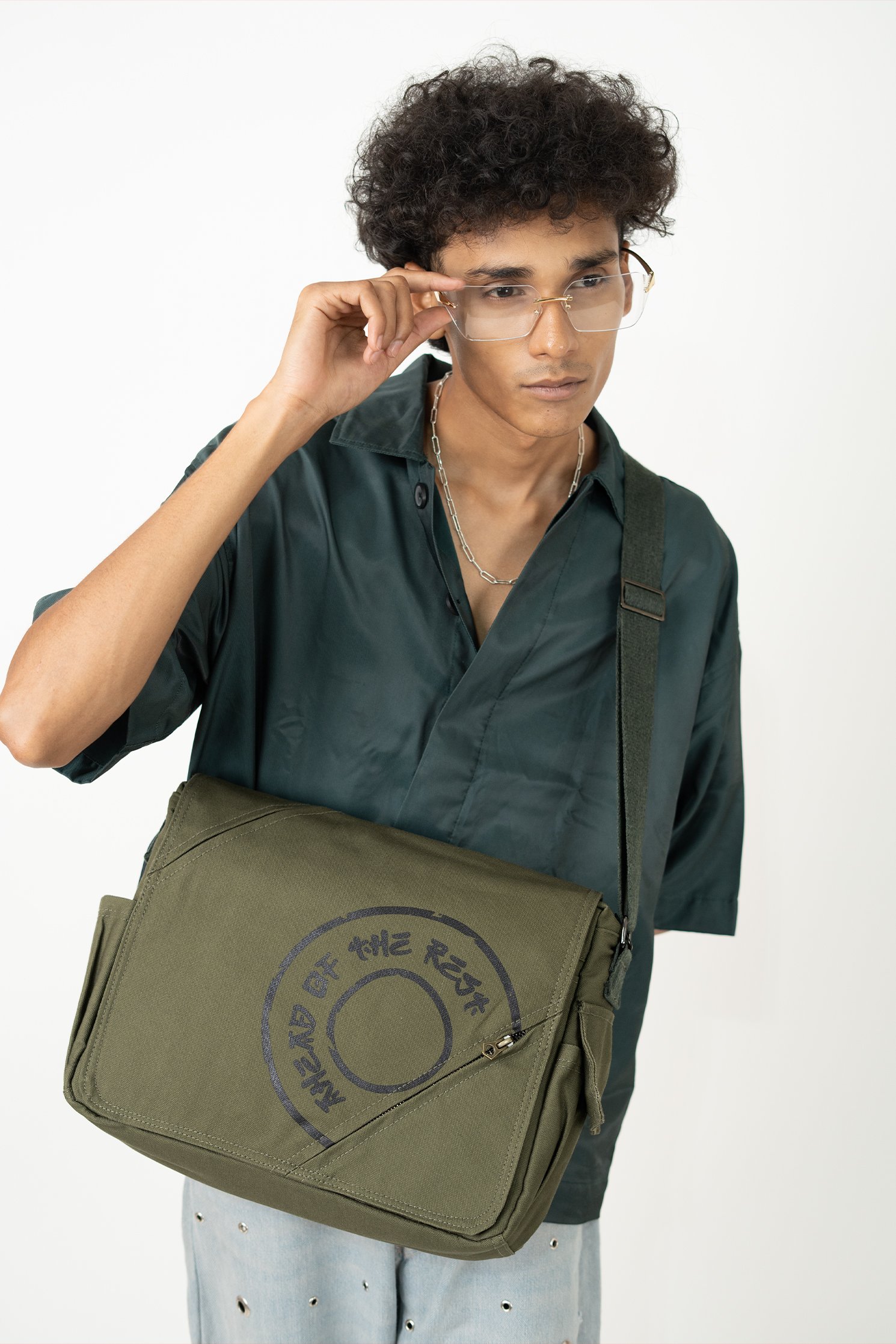 Olive Fine Run Messenger Bag